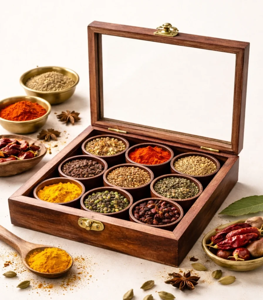 Heritage Wooden Spice Box – 9 Container Organizer