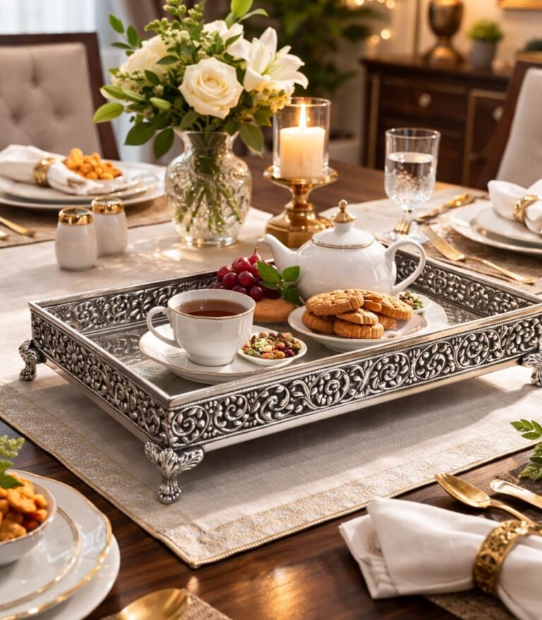 Premium Handcrafted Sheesham Wood Serving Tray with Brass Inlay
