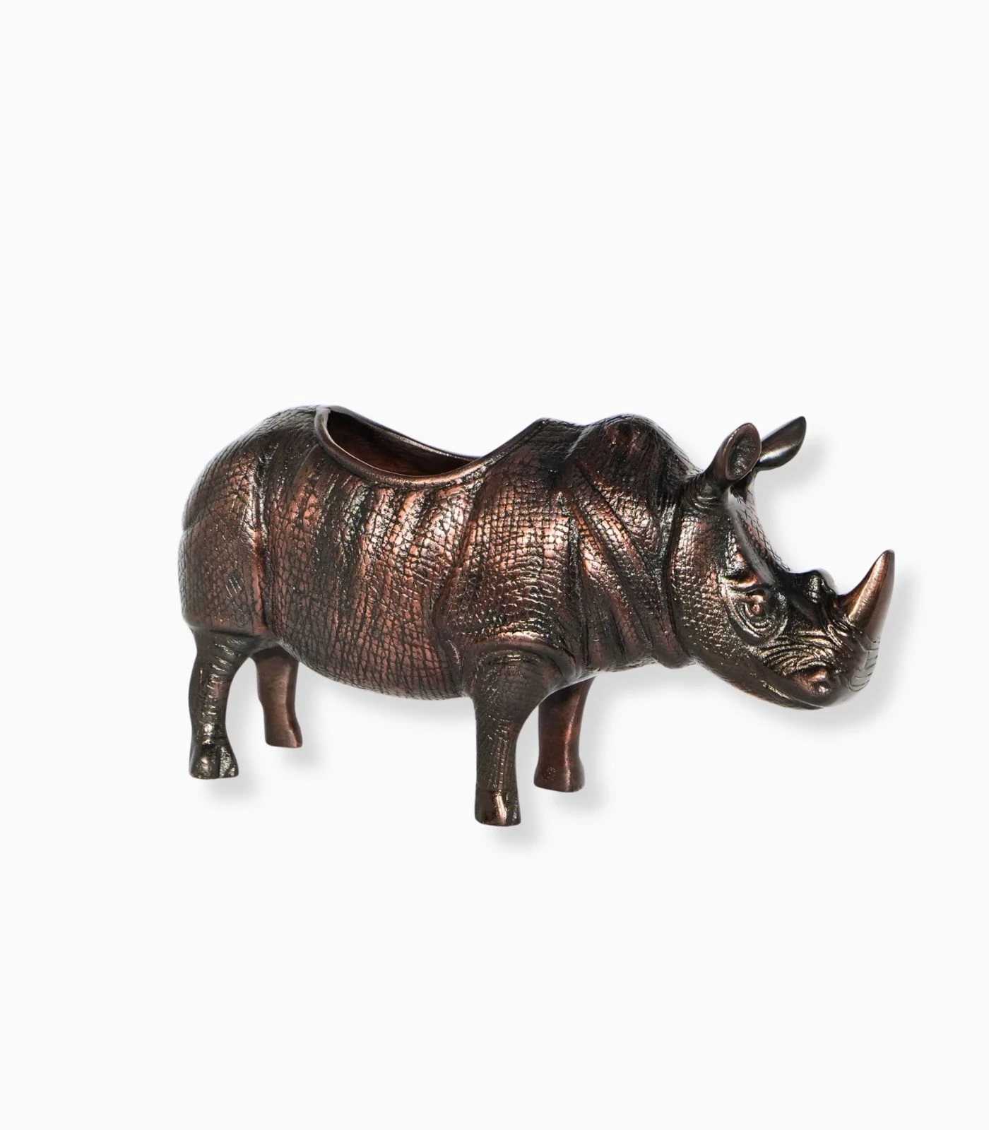 Bring the untamed majesty of the wild to your dining table with this spectacular Rhinoceros Wine Chiller. Masterfully crafted to blend functional barware with striking artisanal home decor, this piece is an instant conversation starter. Featuring incredibly lifelike textures and a rich, antique-style metallic finish, it securely cradles your favorite bottle of wine or champagne while adding an exotic touch of elegance to your space. Whether you are hosting a lavish dinner party or searching for the perfect centerpiece for your home bar, this handcrafted-style sculpture delivers unparalleled charm and utility.